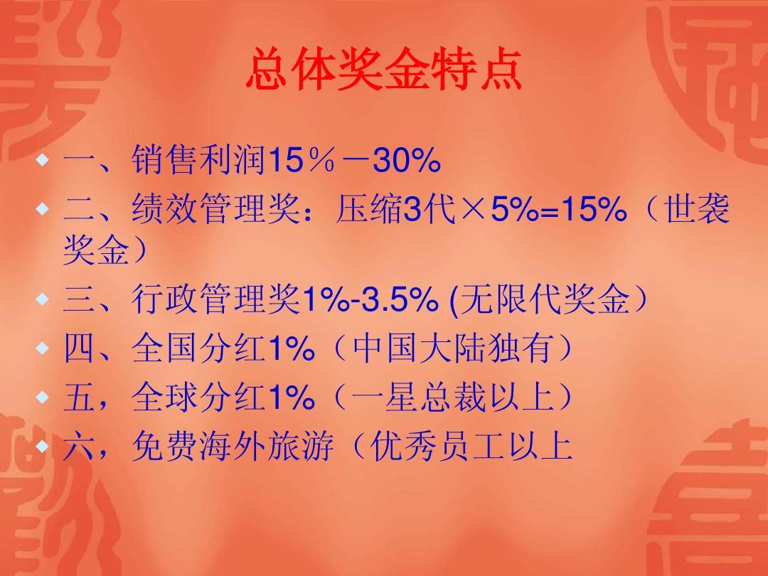 1、销售奖金:这是国珍奖金制度的重要组成部分,主要根据业务伙伴的销售业绩来评定,这一奖金的设定旨在鼓励业务伙伴积极推广国珍产品,不断提升销售业绩。