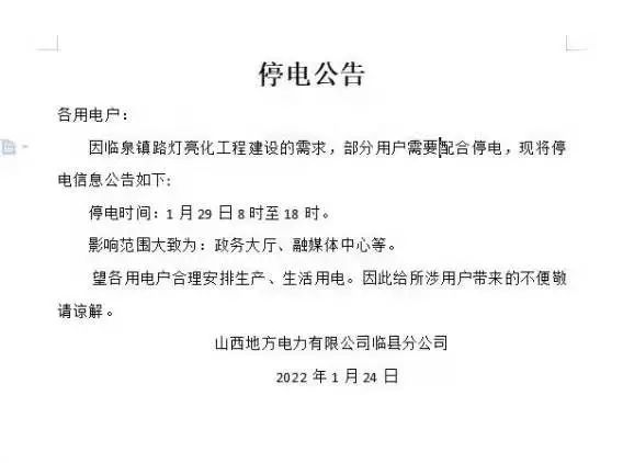 (3)促进电网升级与改造:停电通知为电力公司提供了进行电网升级和改造的机会,有助于提高电力供应的可靠性和稳定性。